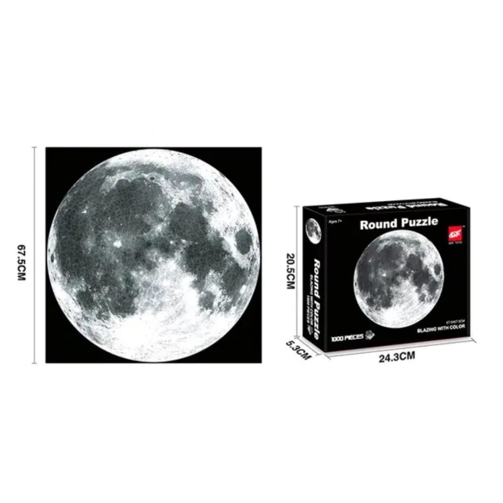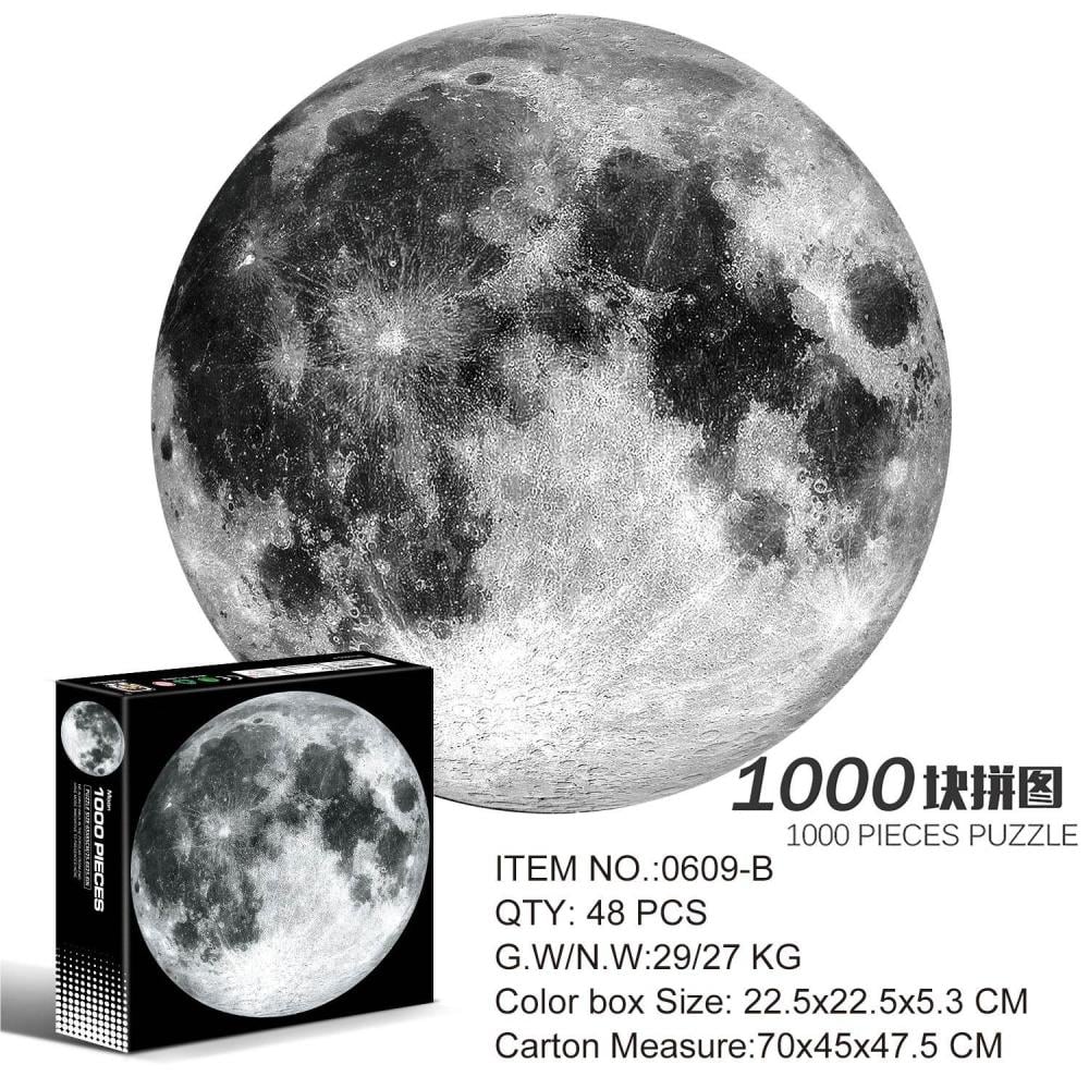 بازل "سطح القمر" المكوّن من 1000 قطعة يعرض لك وجه القمر الحقيقي بدقة مذهلة. تصميم دائري فريد يجعل من هذه القطعة تحفة فنية رائعة .